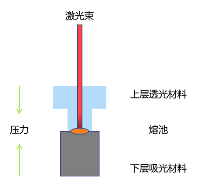 塑料激光焊接的基本原理是特定波長的激光光束透過上層透光材料達到下層吸光材料表面轉換成熱量,由于在壓力的作用下,兩層材料緊密貼合,產生的熱量不能及時散發,在兩者結合的部位聚集并迅速形成熔池。待光束停止后,持續的壓力作用下,熔池冷卻并固化,從而實現兩者融合焊接。
