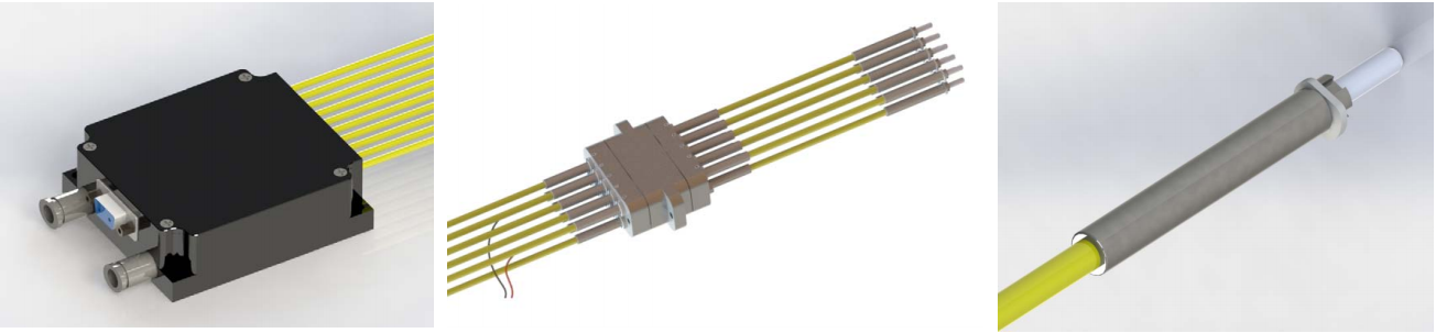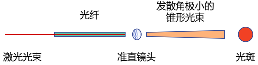 光纖將激光器發射的極細的激光束傳到至準直鏡頭,由準直鏡頭極細的發散型激光光束轉換為近似平行的準直光,通常在40mm的距離產生5mm直徑的較均勻光斑。