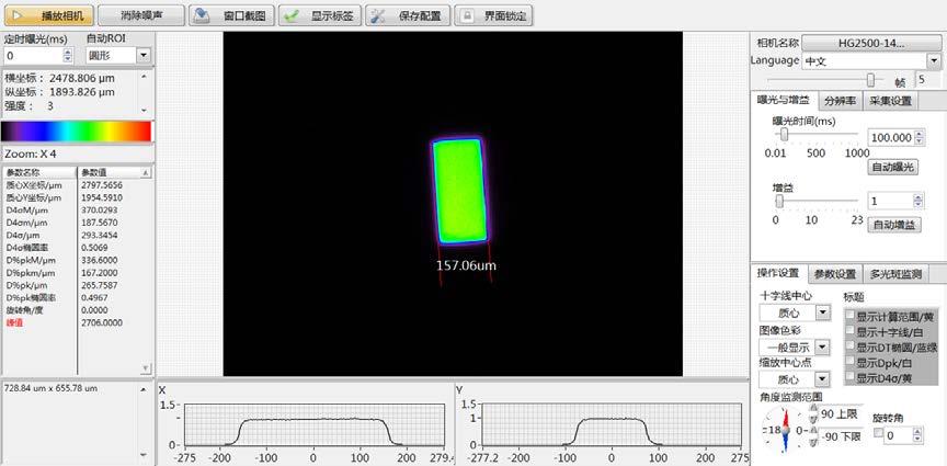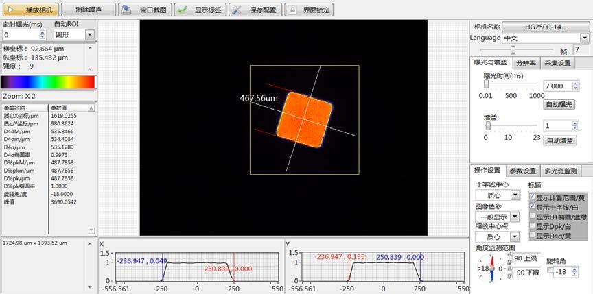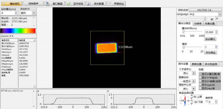 4. 實(shí)時(shí)進(jìn)行光斑的偽彩色2D 顯示、長短軸的高斯曲線顯示