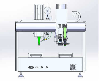 使用雙工位點錫膏送絲通用焊接系統(tǒng),可在加工過程中 Y1、Y2 同時放置產(chǎn)品,同時觸發(fā)加工指令,可先后進(jìn)行視覺定位-點錫膏-焊接。